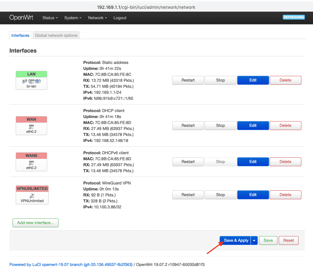 6. Drücken Sie Save & Apply (Speichern & Anwenden).
