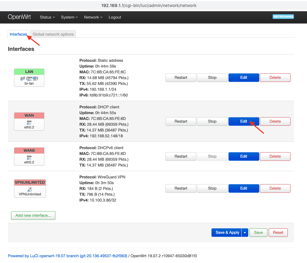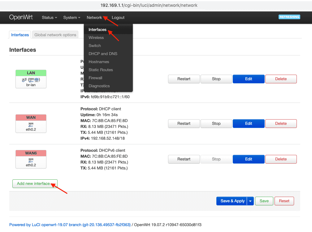 1. Gehen Sie zur Registerkarte Network tab > Interfaces > Add New Interface.