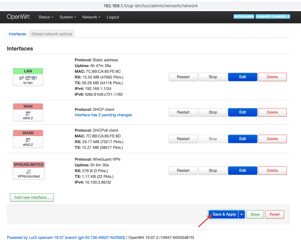 3. Drücken Sie Save & Apply (Speichern & Anwenden).