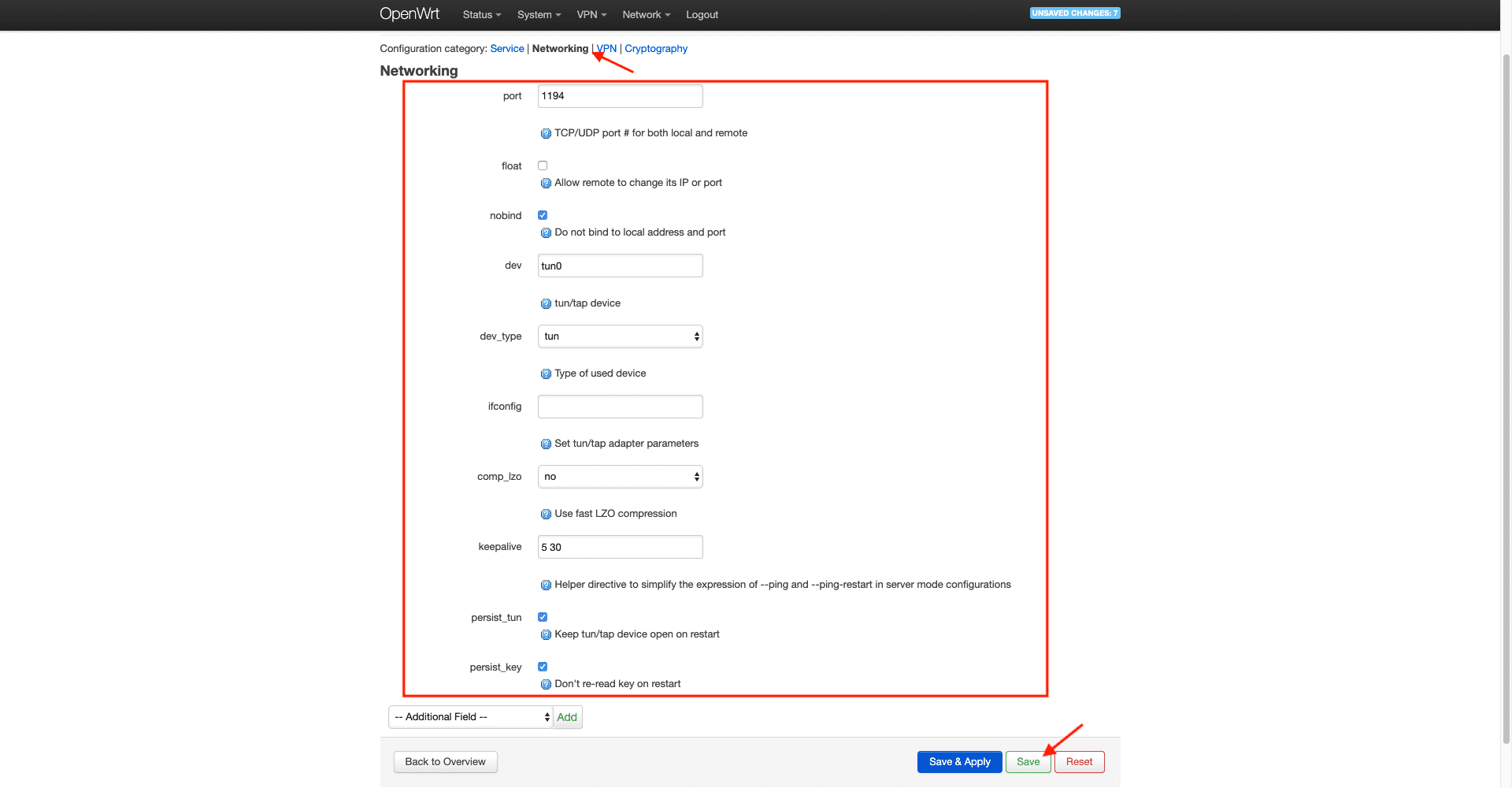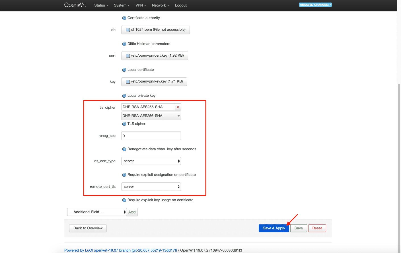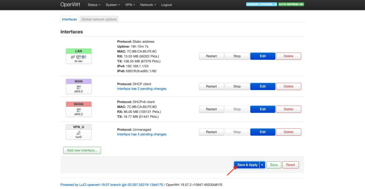10. Drücken Sie Save & Apply (Speichern & Anwenden).