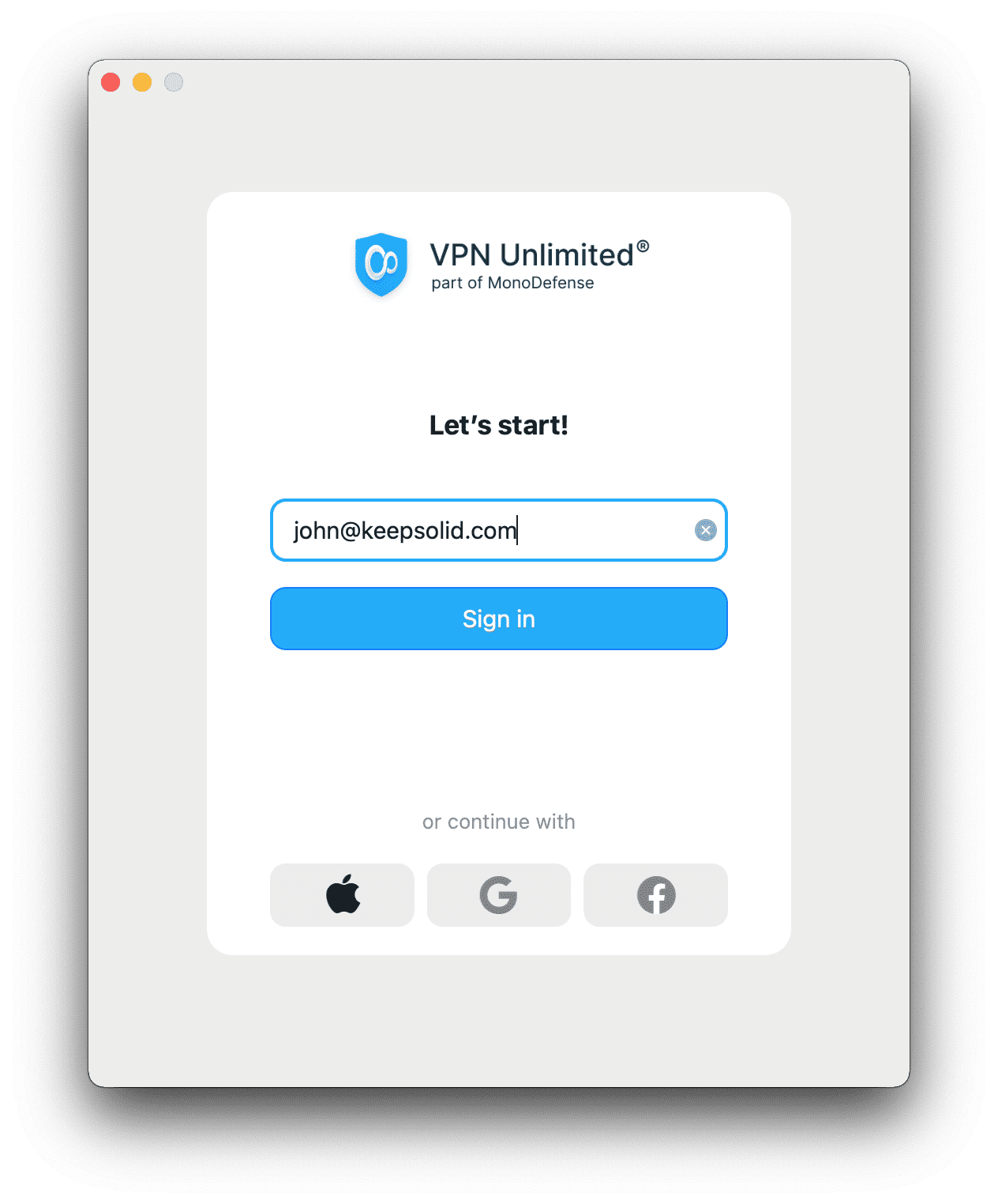 Wenn Sie bereits ein KeepSolid-Konto haben, überspringen Sie diesen Schritt.