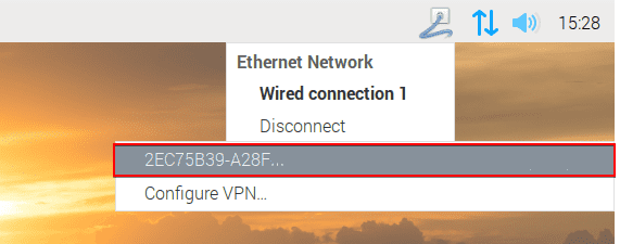 Para activar su conexión VPN, presione el icono Conexiones de red y seleccione su conexión OpenVPN® recién creada.