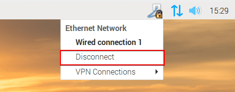 Para desactivar el OpenVPN® client Raspberry Pi, presione el icono Conexiones de red y presione el botón Disconnect (Desconectar).
