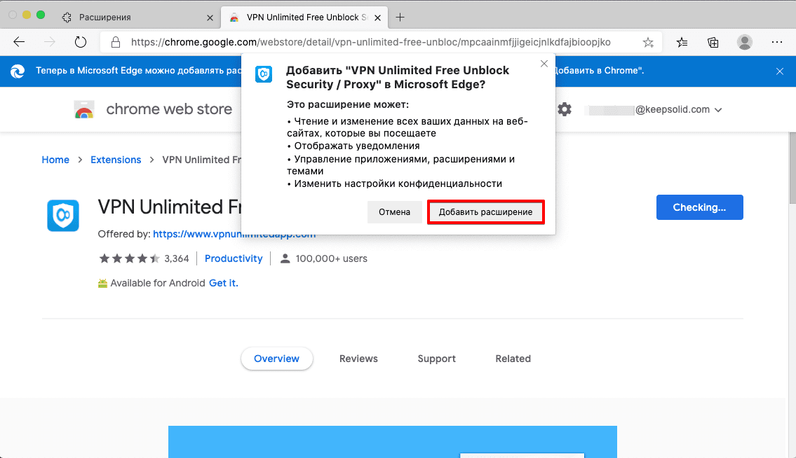 Как добавить расширение VPN Unlimited для Microsoft Edge