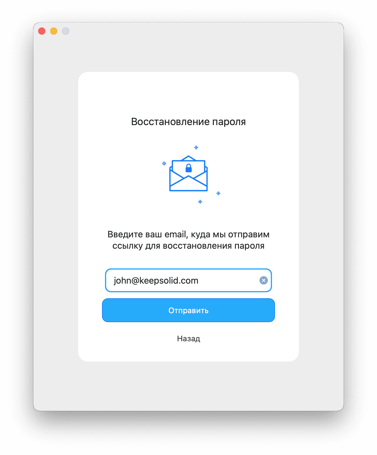 Восстановление пароля в приложении VPN Unlimited